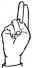 На ћирилици написано РАДНА СТЕВЧИЋ састоји се из 12 слова [?]. Исписано ћириличном једноручном азбуком за глувонеме: